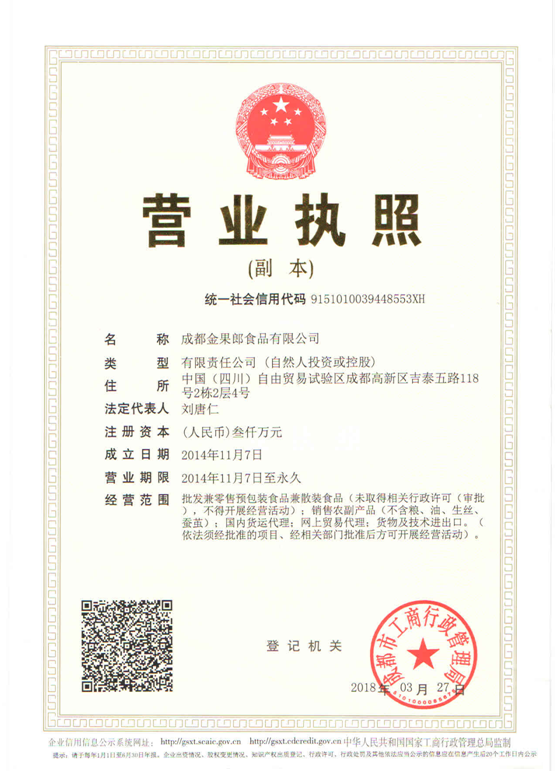 蜀ICP备18017214号-1www.jinguolang.com 成都金果郎食品有限公司 版权所有 地址/Add:中国(四川)自由贸易试验区成都市双流区西航港街道双华路三段33号23栋1层5号 电话/Tel:028-66702702川公网安备 51019002004603号